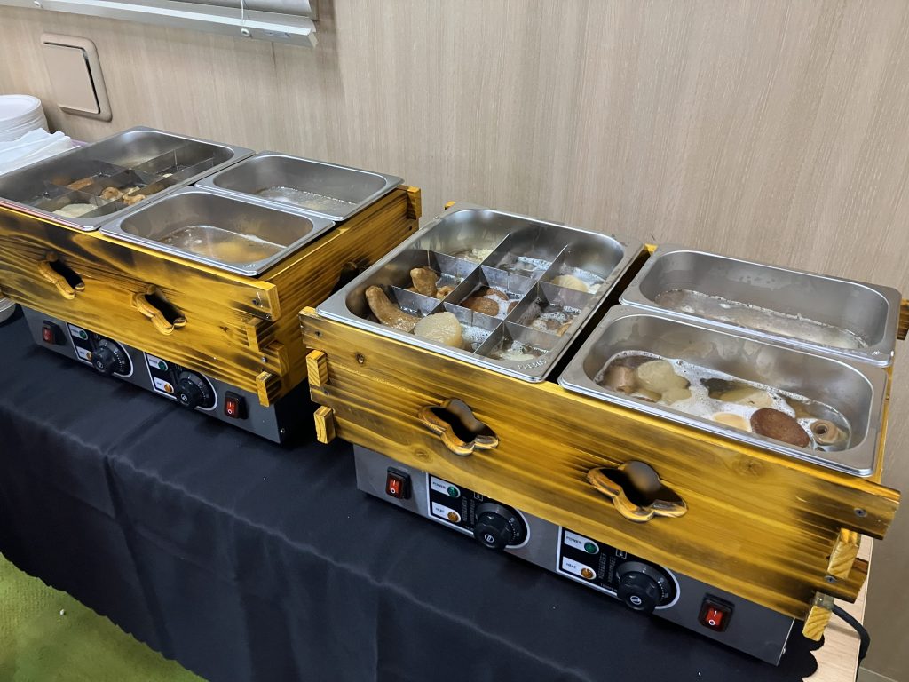 今年はチキンやピラフ、ブルスケッタに加え、寒い季節に嬉しい熱々のおでんをご用意いたしました。