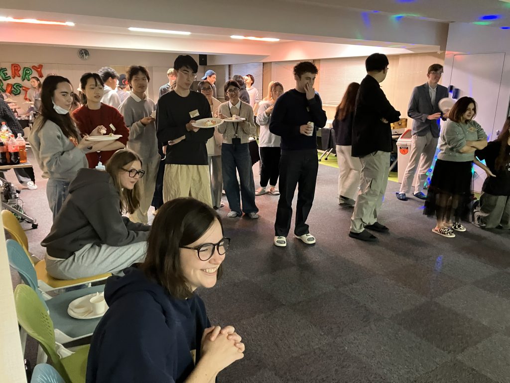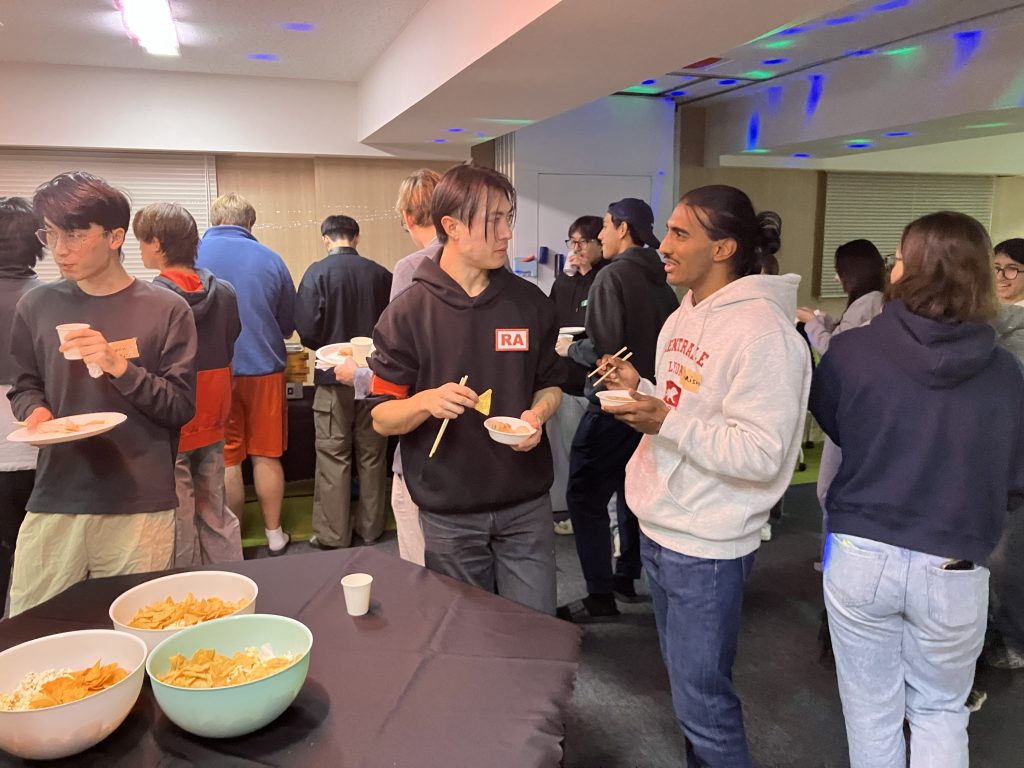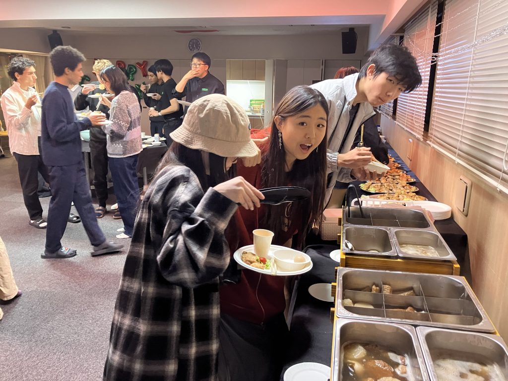留学生の皆さんが日本の味を楽しむ様子が見られました。食事を通じて、国籍を超えた交流が生まれるひとときとなりました。